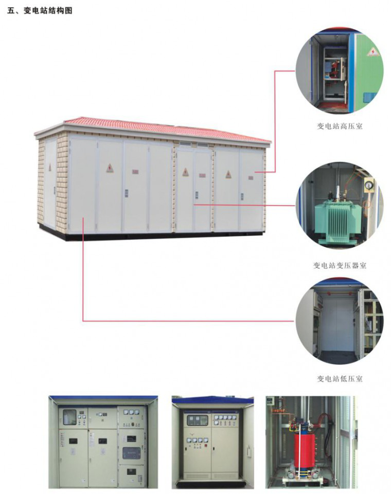目前,公司生產(chǎn)的歐式箱式變電站的電壓等級:高壓側(cè)為 3 ~ 35kV 、低壓側(cè)為 0.4 ~ 10kV 。變壓器的容量:當(dāng)額定電壓比為 35/10 、 6 、 0.4 kV 時可從幾百千伏安~上萬千伏安、當(dāng)額定電壓比為 10 、 6/0.4 kV 時可從幾十千伏安~幾千千伏安。